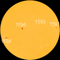 Sunspot 1598 poses a threat for strong X-class solar flares. Credit: SDO/HMI