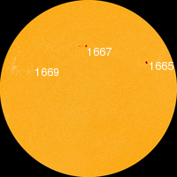 Sunspot AR1667 is decaying, but still poses a threat for C-class solar flares. Credit: SDO/HMI