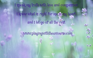 Affirmation: “I speak my truth with love and compassion. I know what is right for me in my heart and I let of go of all the rest.”   And so it is.