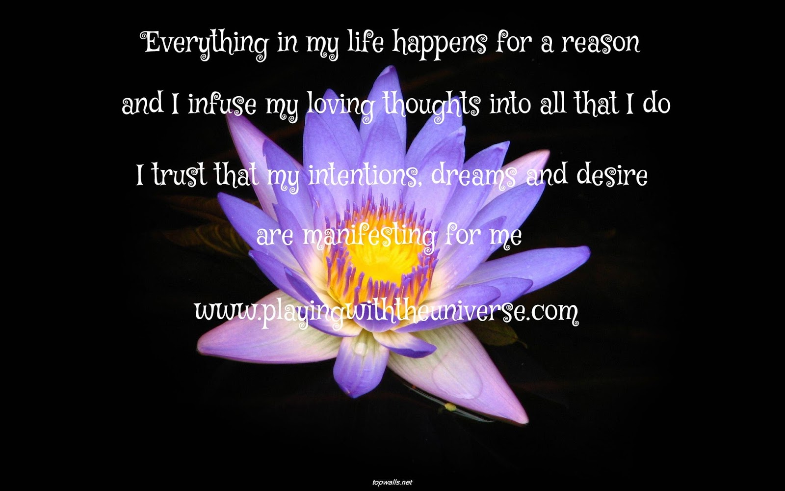 Affirmation: “Everything in my life happens for a reason and I infuse my loving thoughts into all that I do and I trust that my intentions, dreams and desires are manifesting for me.”