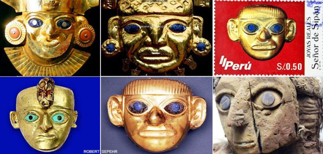 Numerous PRE-HISPANIC Caucasian mummies have been found in South America with fair hair, some with blue stones covering the eyes, as well as gold masks with similar striking blue eyes, matching the legends of the pale-skinned Sun-gods.