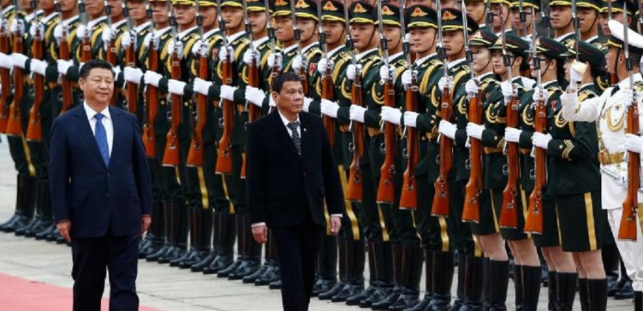 President of the Philippines Rodrigo Duterte and Chinese President Xi Jinping review the guard of honor as they attend a welcoming ceremony at the Great Hall of the People in Beijing, China, October 20, 2016. REUTERS/Thomas Peter