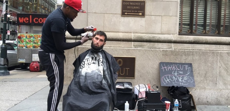 A year ago, the barber made headlines when he started offering free haircuts to Philadelphia’s homeless. He said at the time, “Totally free. Feed em, provide them with clothing, toiletries, the whole nine yards.”