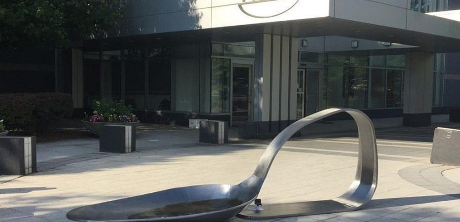 Granted, this was no ordinary spoon. This was an elegant 10-foot long, 800-pound full metal sculpture of a heroin spoon twisted upon itself. The work of art, hand-crafted by Domenic Esposito, a Boston-based artist, appears to embody the mind-bending, soul-disfiguring effects of heroin addiction. And it was placed in front of a certain building to send a message.