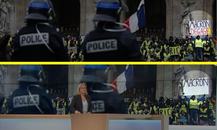 Recently France TV 3 recently aired a segment on the ongoing yellow vest protests, shamelessly doctoring and editing a protest sign being held by a French dissident. The sign originally read “Macron Degage,’ which means ‘Macron Resign,’ a defining issue in these protests. The same photo aired on France TV, however, with the word ‘Degage’ whited out.