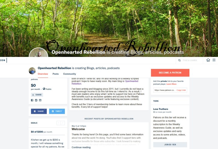 However, this doesn’t change the fact that I am once again at risk of losing the ability to write for Openhearted Rebellion for a living; much less put work into a podcast, a new blog I’m working on, or other side projects.