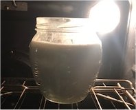 While you are preparing the mixture turn the oven on lowest setting. When you are ready to put jar into oven, turn off heat and turn on the oven light. Place your yogurt mixture next to the light and leave there for 24-36 hours, and there you have it. I just made a double batch, it also lasts quite a long while in the fridge.