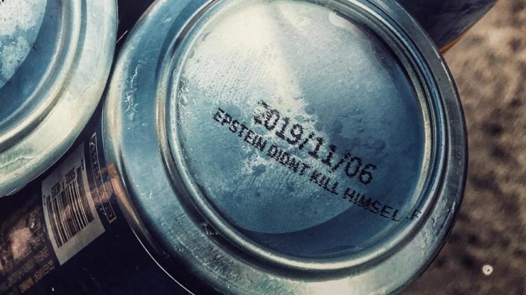 (TMU) — The “Epstein Didn’t Kill Himself” meme has reached an entirely new, unprecedented level as it has officially crossed the line from internet meme into physical reality via the underside of a beer can.