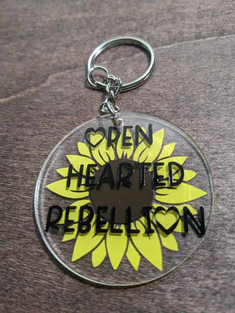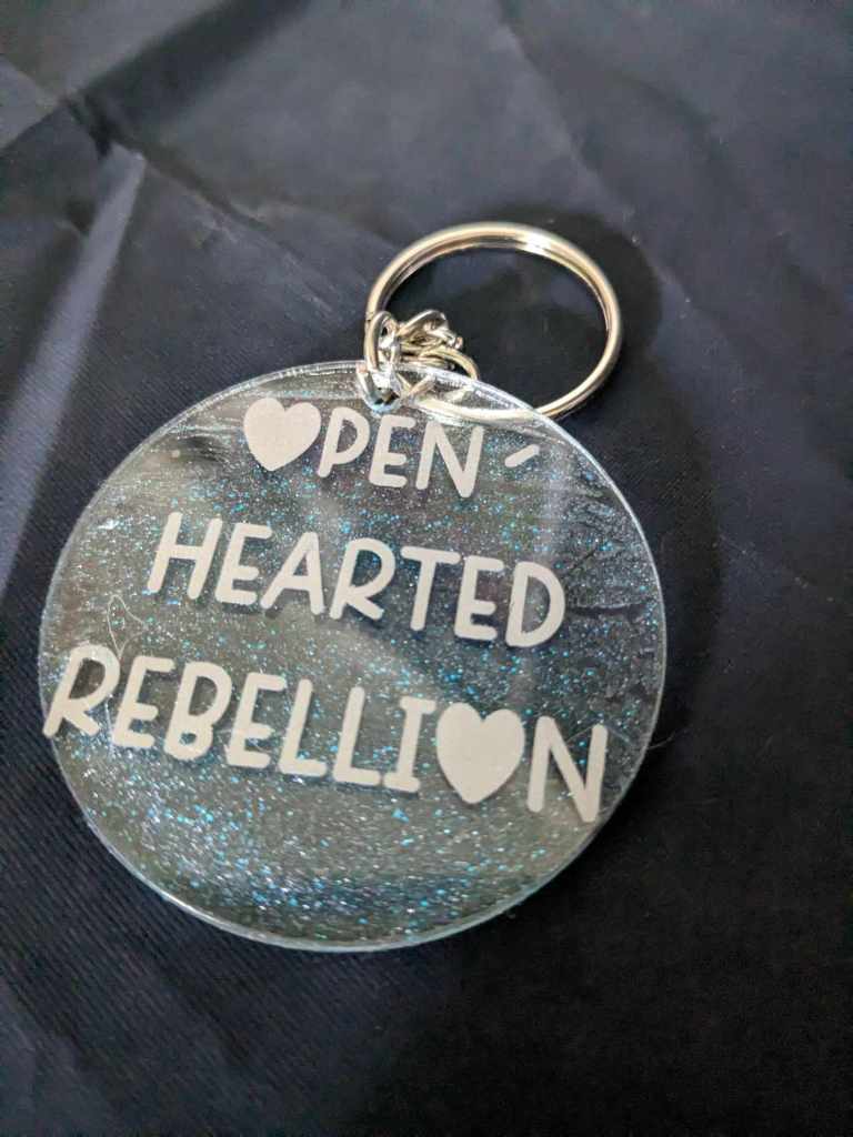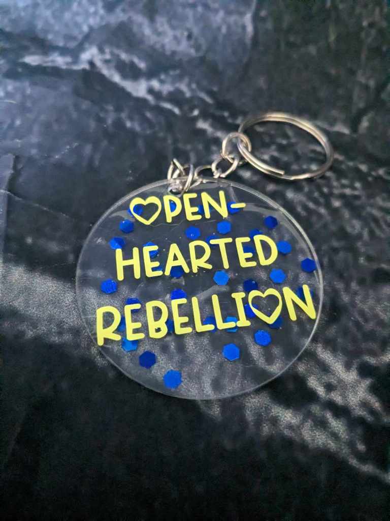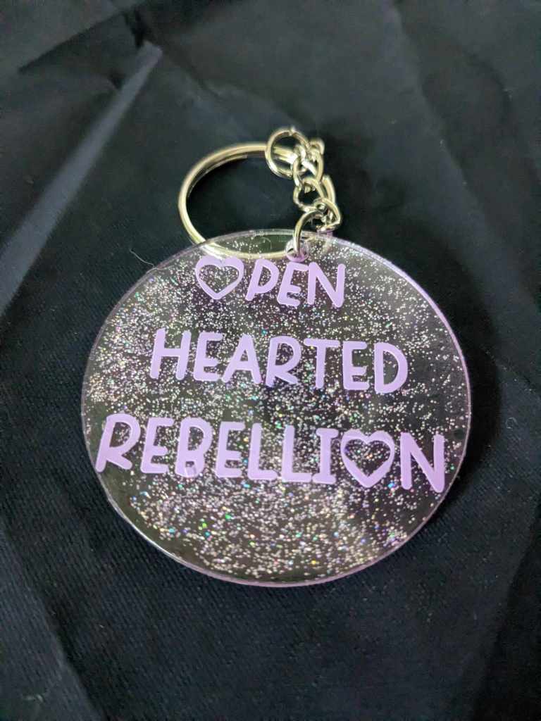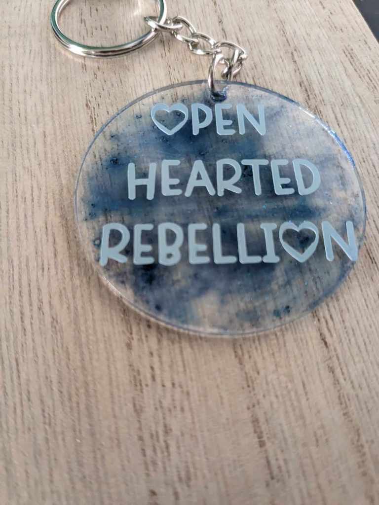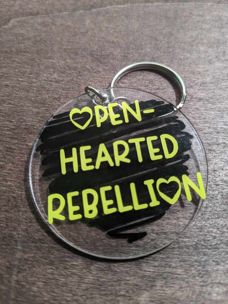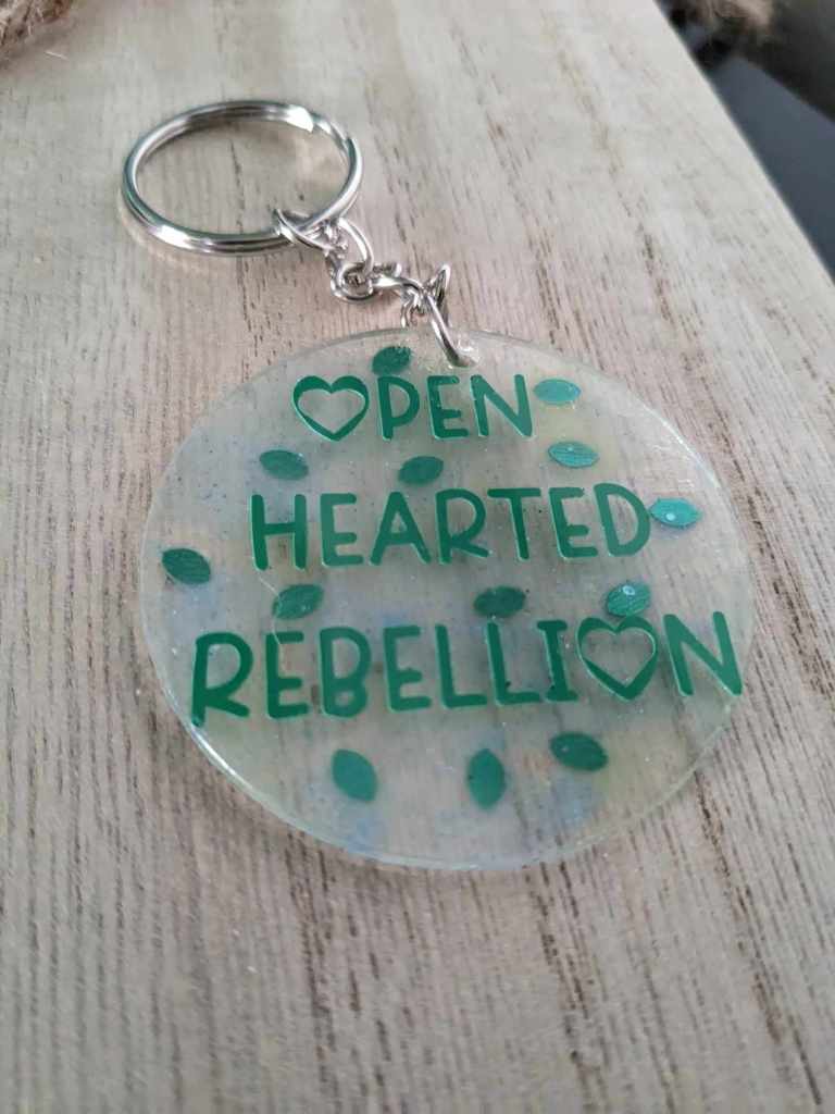 I am excited to announce that we are offering Openhearted Rebellion keychains for those who would like to support the blog and receive a neat little trinket in return. Each keychain will be one of a kind, as there is no method to our madness.