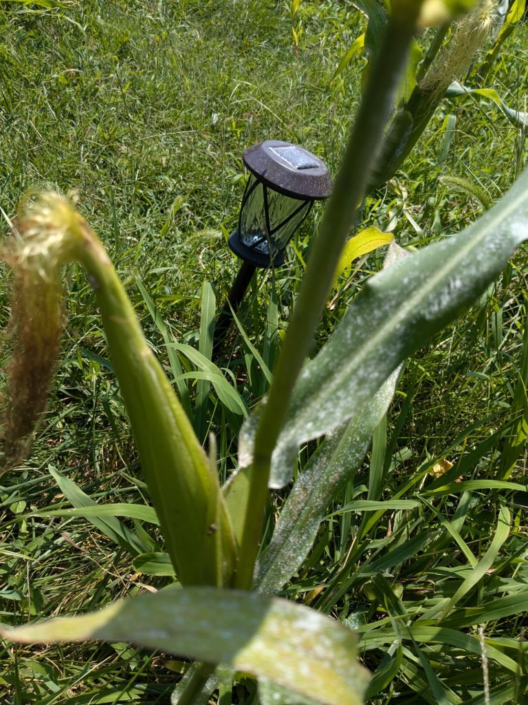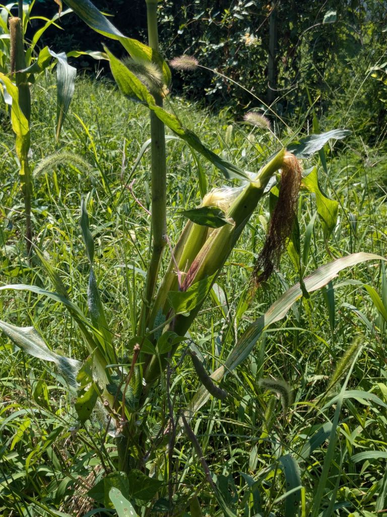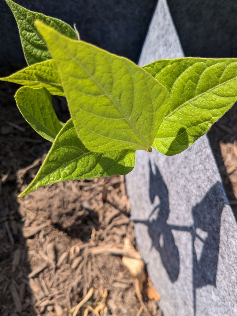 So far, I have four silver queen corn stalks growing (more now since I planted some early sunglow but they’re just babies) and some black bean bushes.