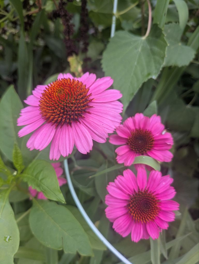 Other random spots throughout my yard feature cucumbers; dill; jalapeno peppers; purple tomato; and echinacea flowers. Featured in pots and grow bags are red potatoes along with more onions; raspberries; another doomed strawberry plant; cayenne pepper; Roma tomato; basil; oregano; and randomly sprinkled throughout are sunflowers, marigolds and zinnias.