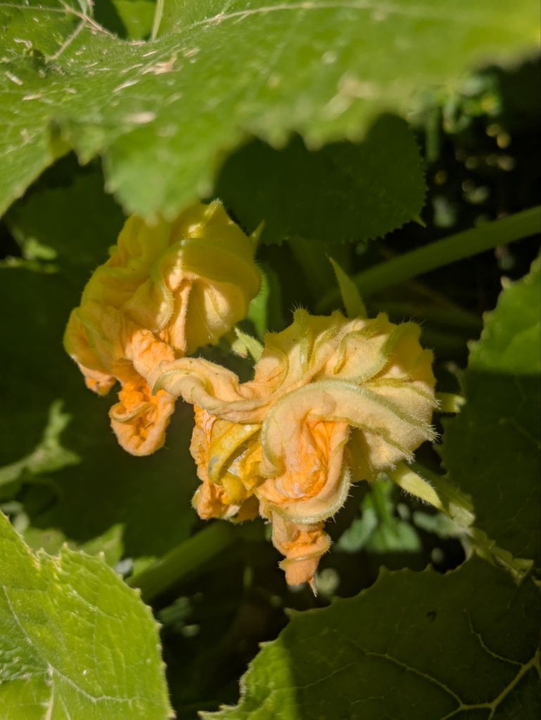 Update: the pumpkin showed up! The watermelon may have, too. Time will tell as the vines grow between both spaces.